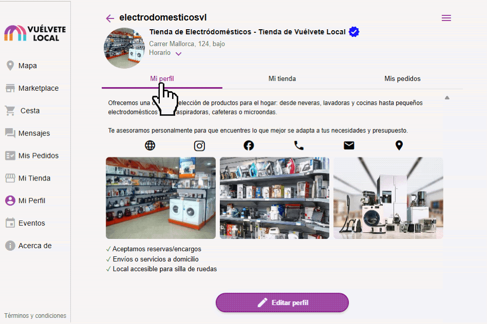 Abrir panel de Stripe*Solo disponible para comercios que hayan completado la sección de Ventas a través de Vuélvete Local de su perfil.